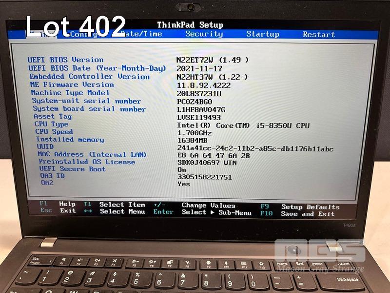 LAPTOP, LENOVO THINKPAD T480s, TYPE 20L8, CORE i5 8350U (8TH GEN) @ 1.7GHz, 16GB DDR4 RAM, 256GB NVMe M.2 SSD, 14" TOUCHSCREEN (1920x1080), INTEL HD VIDEO, Wi-Fi, BLUETOOTH, WINDOWS 11 PRO INSTALLED (NO USB-C POWER SUPPLY) (NOTE: MARKS ON SCREEN) S/N:PC0Z4BG0