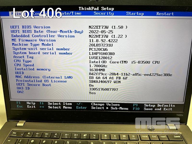 LAPTOP, LENOVO THINKPAD T480s, TYPE 20L8, CORE i5 8350U (8TH GEN) @ 1.7GHz, 16GB DDR4 RAM, 256GB NVMe M.2 SSD, 14" TOUCHSCREEN (1920x1080), INTEL HD VIDEO, Wi-Fi, BLUETOOTH, WINDOWS 11 PRO INSTALLED (NO USB-C POWER SUPPLY) (NOTE: MARKS & BRIGHT SPOT ON SCREEN) S/N:PC120CW6