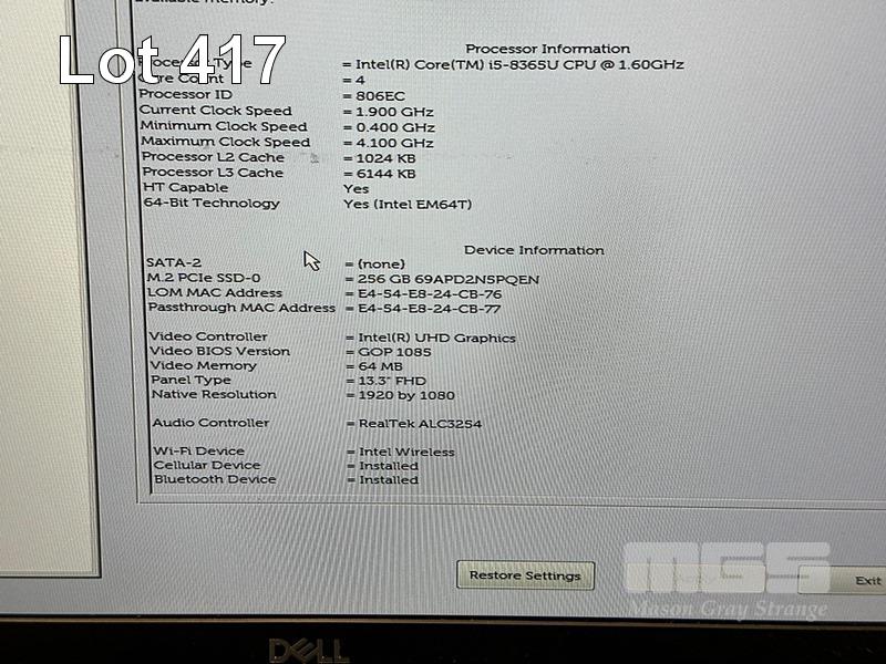 LAPTOP, DELL LATITUDE 5300, CORE i5 8365U (8TH GEN) @ 1.6GHz, 8GB DDR4 RAM, 256GB NVMe M.2 SSD, 13.3" WIDESCREEN (1920x1080), INTEL UHD GRAPHICS 620, Wi-Fi, CELLULAR, BLUETOOTH, WINDOWS 11 PRO INSTALLED (NO POWER SUPPLY) (NOTE: MARKS ON SCREEN) S/N:1N9HMT2