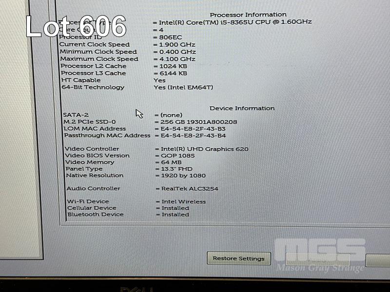 LAPTOP, DELL LATITUDE 5300, CORE i5 8365U (8TH GEN) @ 1.6GHz, 8GB DDR4 RAM, 256GB NVMe M.2 SSD, 13.3" WIDESCREEN (1920x1080), INTEL UHD GRAPHICS 620, Wi-Fi, CELLULAR, BLUETOOTH, WINDOWS 11 PRO INSTALLED (NO POWER SUPPLY) (NOTE: MARKS ON SCREEN) S/N:DK6GNT2