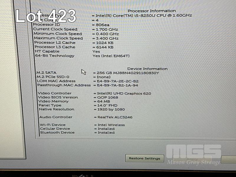 LAPTOP, DELL LATITUDE 7490, CORE i5 8250U (8TH GEN) @ 1.6GHz, 8GB DDR4 RAM, 256GB M.2 SSD, 14" WIDESCREEN (1920x1080), INTEL UHD GRAPHICS 620, Wi-Fi, CELLULAR, BLUETOOTH, WINDOWS 11 PRO INSTALLED (NO POWER SUPPLY) (NOTE: MINOR MARKS ON SCREEN) S/N:CHZ9LQ2