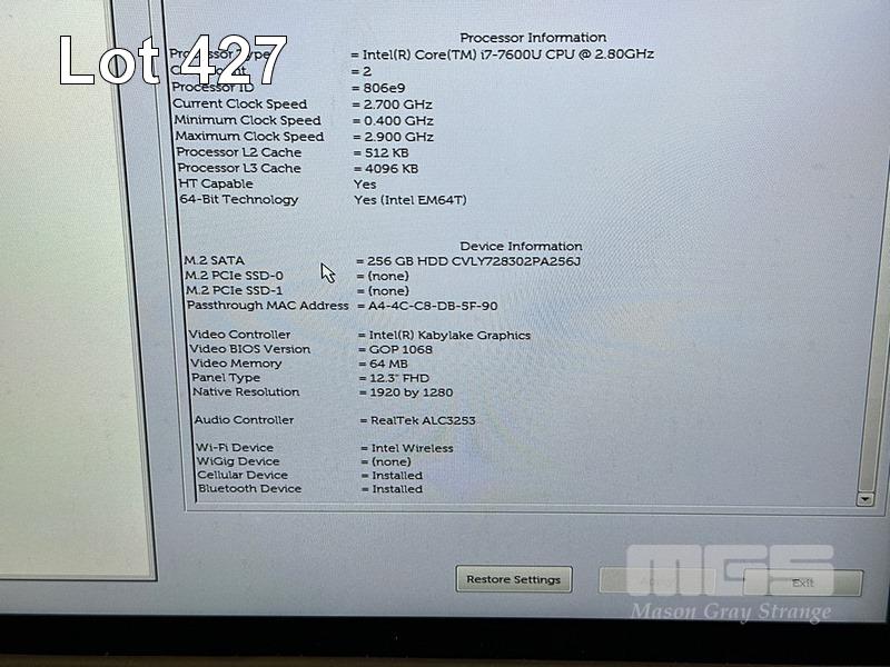 TABLET PC, DELL LATITUDE 5285, CORE i7 7600U (7TH GEN) @ 2.8GHz, 16GB DDR3 RAM, 256GB M.2 SSD, 12.3" TOUCHSCREEN (1920x1080), INTEL HD GRAPHICS 620, Wi-Fi, CELLULAR, BLUETOOTH, WINDOWS 10 PRO INSTALLED & KEYBOARD (NO USB-C POWER SUPPLY) (NOTE: MARKS ON SCREEN) S/N:FKNXFH2