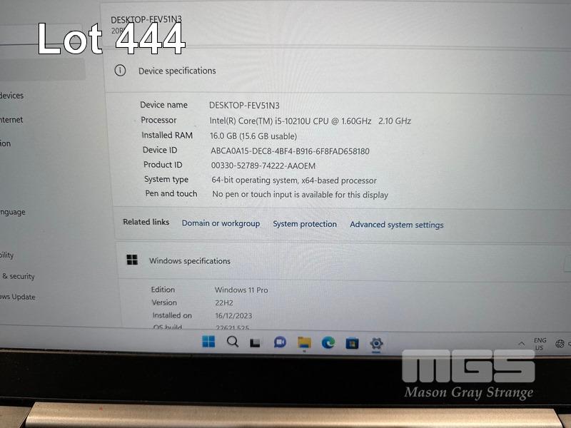 LAPTOP, LENOVO THINKBOOK 14-IML, TYPE 20RV, CORE i5 10210U (10TH GEN) @ 1.6GHz, 16GB RAM, 256GB NVMe M.2 SSD, 14" WIDESCREEN (1920x1080), INTEL UHD GRAPHICS, Wi-Fi, BLUETOOTH, WINDOWS 11 PRO INSTALLED & POWER SUPPLY (NOTE: MISSING RUBBER PAD ON BOTTOM OF LAPTOP, MINOR MARKS ON SCREEN) S/N:LR0D1MXG