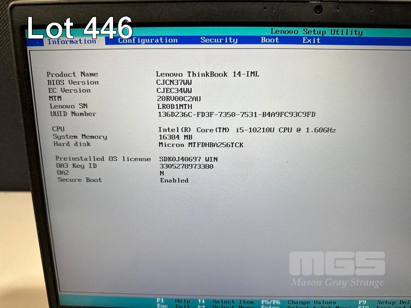LAPTOP, LENOVO THINKBOOK 14-IML, TYPE 20RV, CORE i5 10210U (10TH GEN) @ 1.6GHz, 16GB RAM, 256GB NVMe M.2 SSD, 14" WIDESCREEN (1920x1080), INTEL UHD GRAPHICS, Wi-Fi, BLUETOOTH, WINDOWS 11 PRO INSTALLED & POWER SUPPLY (NOTE: MINOR DAMAGE TO CASING, MINOR MARKS ON SCREEN) S/N:LR0D1MTH