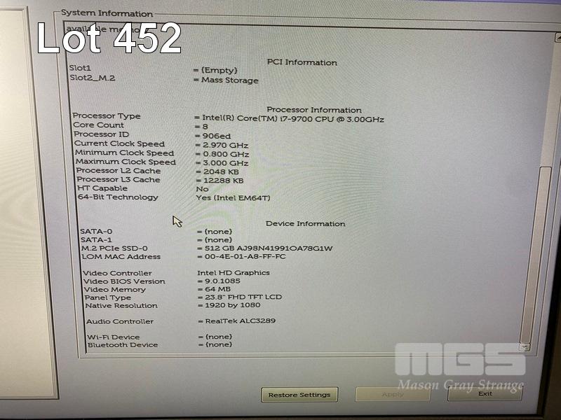 ALL-IN-ONE PC, DELL OPTIPLEX 7470, CORE i7 9700 (9TH GEN) @ 3GHz, 8GB DDR4 RAM, 512GB NVMe M.2 SSD, INBUILT 23.8" FHD WIDESCREEN (1920x1080), INTEL HD GRAPHICS, WEBCAM, 5 x USB, 1 x USB-C, WINDOWS 11 HOME INSTALLED, KEYBOARD & MOUSE S/N:9NJLRZ2