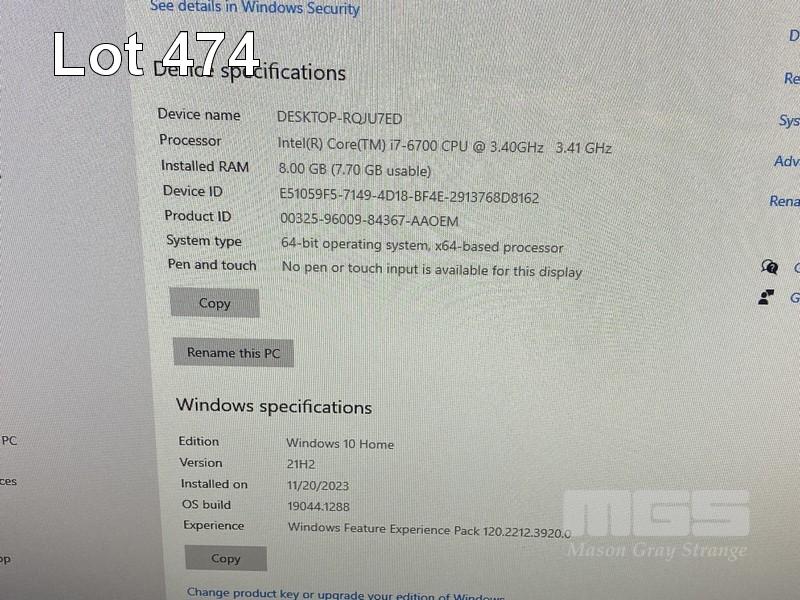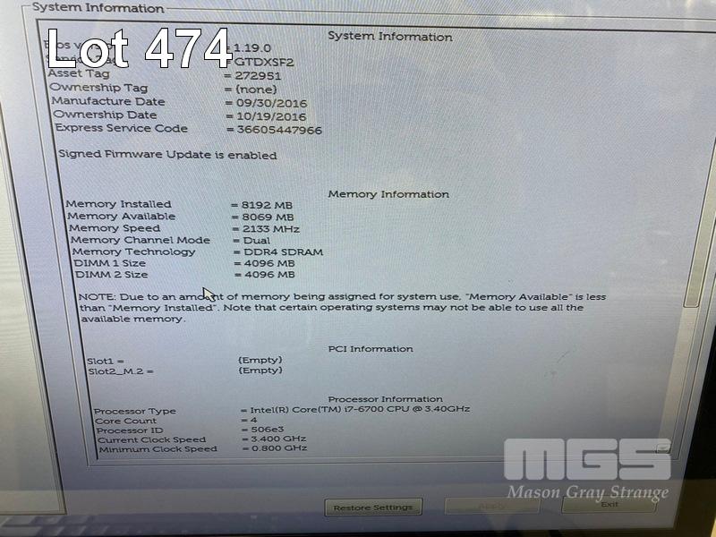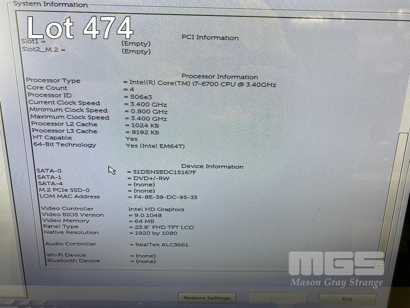 ALL-IN-ONE PC, DELL OPTIPLEX 7440, CORE i7 6700 (6TH GEN) @ 3.4GHz, 8GB DDR4 RAM, 256GB SSD, DVD-RW, INBUILT 23.8" FHD TOUCHSCREEN (1920x1080), INTEL HD GRAPHICS, WEBCAM, 8 x USB, WINDOWS 10 HOME INSTALLED, KEYBOARD & MOUSE (NOTE: SMALL SCRATCH ON SCREEN) S/N:GTDXSF2