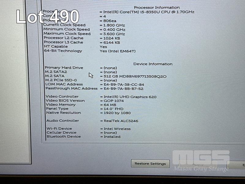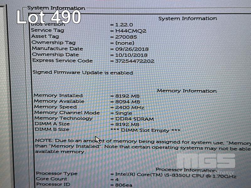 LAPTOP, DELL LATITUDE 5490, CORE i5 8350U (8TH GEN) @ 1.7GHz, 8GB DDR4 RAM, 512GB M.2 SSD, 14" WIDESCREEN (1920x1080), INTEL UHD GRAPHICS 620, Wi-Fi, BLUETOOTH, WINDOWS 11 HOME INSTALLED & POWER SUPPLY (NOTE: CRACK LINE ON CASING, MARKS & BRIGHT SPOT ON SCREEN) S/N:H44CMQ2
