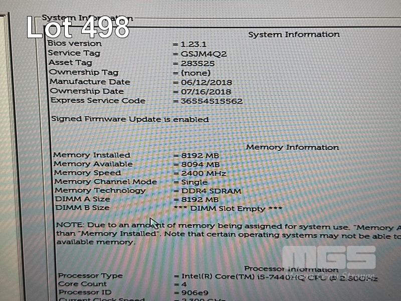 LAPTOP, DELL LATITUDE 5480, CORE i5 7440HQ (7TH GEN) @ 2.8GHz, 8GB DDR4 RAM, 512GB M.2 SSD, 14" WIDESCREEN (1920x1080), INTEL HD GRAPHICS 630, Wi-Fi, BLUETOOTH, WINDOWS 10 HOME INSTALLED (NO POWER SUPPLY) (NOTE: MARKS & SPOTS ON SCREEN) S/N:GSJM4Q2