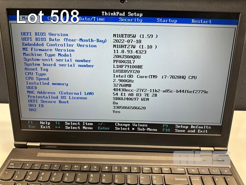 LAPTOP, LENOVO THINKPAD P51 MOBILE WORKSTATION, TYPE 20HJ, CORE i7 7820HQ (7TH GEN) @ 2.9GHz, 32GB DDR4 RAM, 500GB NVMe M.2 SSD, 15.6" WIDESCREEN (1920x1080), 4GB NVIDIA QUADRO M2200 VIDEO, Wi-Fi, BLUETOOTH, WINDOWS 10 PRO INSTALLED & POWER SUPPLY (NOTE: MINOR MARKS ON SCREEN) S/N:PF0XGSL7