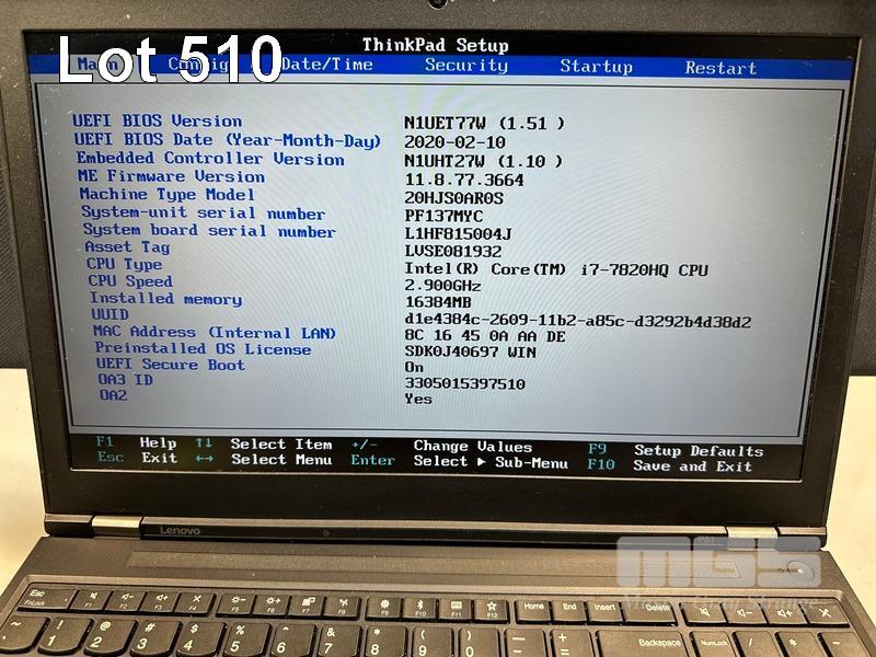 LAPTOP, LENOVO THINKPAD P51 MOBILE WORKSTATION, TYPE 20HJ, CORE i7 7820HQ (7TH GEN) @ 2.9GHz, 16GB DDR4 RAM, 512GB NVMe M.2 SSD, 15.6" WIDESCREEN (1920x1080), 4GB NVIDIA QUADRO M2200 VIDEO, Wi-Fi, BLUETOOTH, WINDOWS 10 PRO INSTALLED & POWER SUPPLY S/N:PF137MYC