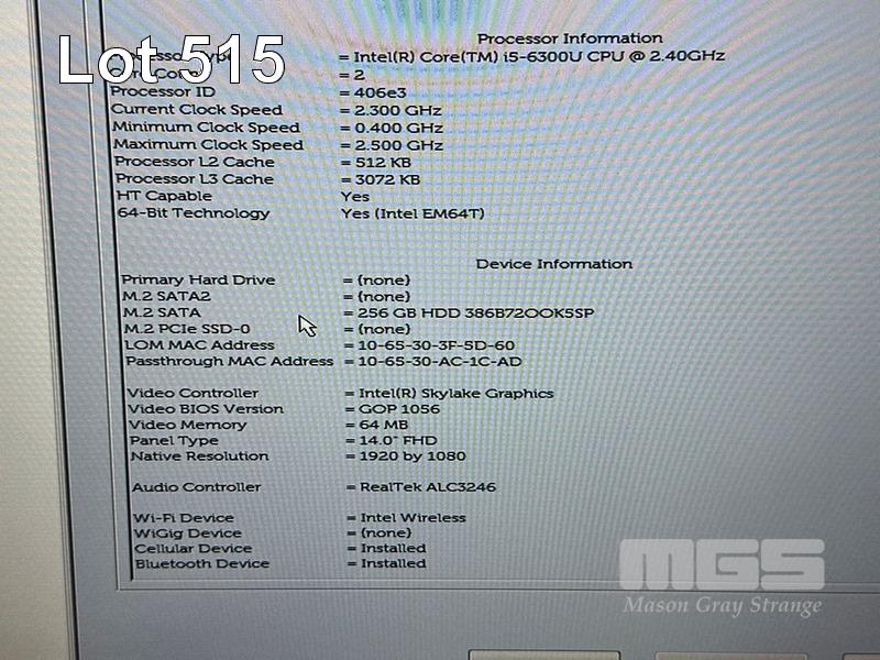 LAPTOP, DELL LATITUDE 5480, CORE i5 6300U (6TH GEN) @ 2.4GHz, 8GB DDR4 RAM, 256GB M.2 SSD, 14" WIDESCREEN (1920x1080), INTEL HD GRAPHICS 520, Wi-Fi, CELLULAR, BLUETOOTH, WINDOWS 10 PRO INSTALLED (NO POWER SUPPLY) S/N:9Z8RQN2