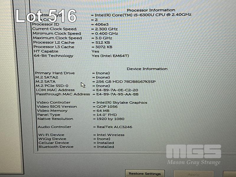 LAPTOP, DELL LATITUDE 5480, CORE i5 6300U (6TH GEN) @ 2.4GHz, 8GB DDR4 RAM, 256GB M.2 SSD, 14" WIDESCREEN (1920x1080), INTEL HD GRAPHICS 520, Wi-Fi, CELLULAR, BLUETOOTH, WINDOWS 10 PRO INSTALLED (NO POWER SUPPLY) S/N:22DQRQ2