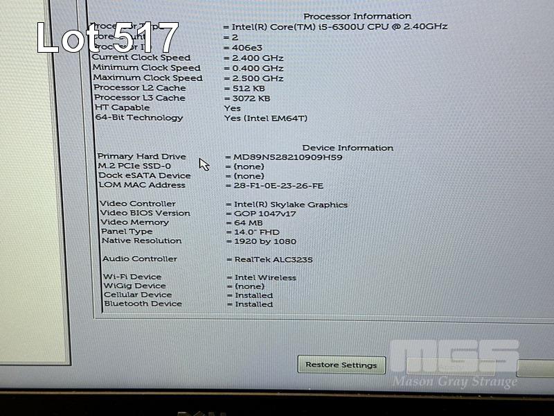 LAPTOP, DELL LATITUDE E7470, CORE i5 6300U (6TH GEN) @ 2.4GHz, 8GB DDR4 RAM, 256GB M.2 SSD, 14" WIDESCREEN (1920x1080), INTEL HD GRAPHICS 520, Wi-Fi, CELLULAR, BLUETOOTH, WINDOWS 10 PRO INSTALLED (NO POWER SUPPLY) S/N:79XDLC2