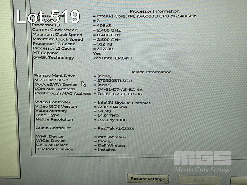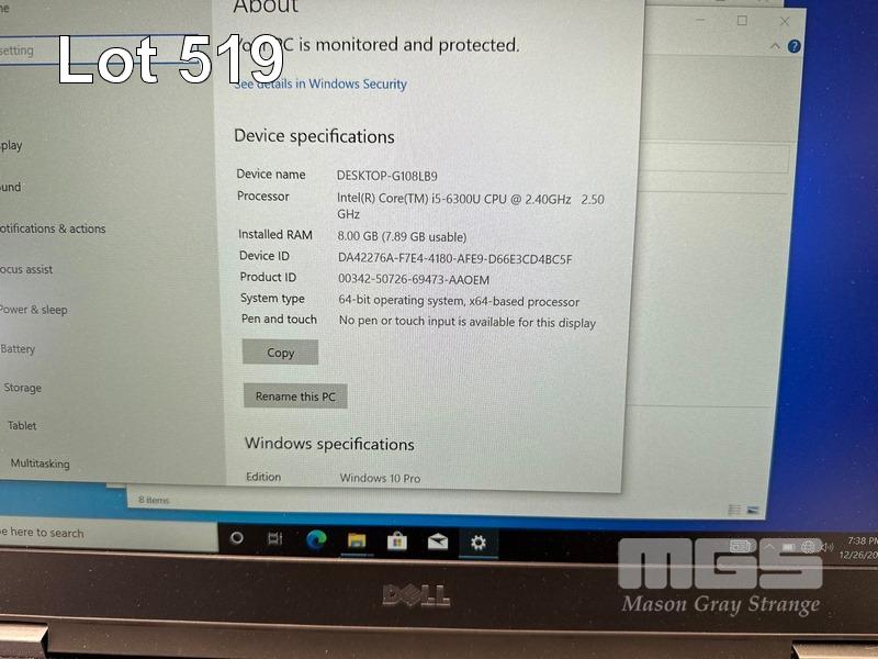 LAPTOP, DELL LATITUDE E7470, CORE i5 6300U (6TH GEN) @ 2.4GHz, 8GB DDR4 RAM, 256GB NVMe M.2 SSD, 14" WIDESCREEN (1920x1080), INTEL HD GRAPHICS 520, Wi-Fi, CELLULAR, BLUETOOTH, WINDOWS 10 PRO INSTALLED (NO POWER SUPPLY) S/N:3PT00G2