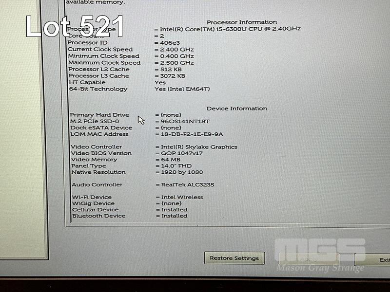 LAPTOP, DELL LATITUDE E7470, CORE i5 6300U (6TH GEN) @ 2.4GHz, 8GB DDR4 RAM, 256GB NVMe M.2 SSD, 14" WIDESCREEN (1920x1080), INTEL HD GRAPHICS 520, Wi-Fi, CELLULAR, BLUETOOTH, WINDOWS 10 PRO INSTALLED (NO POWER SUPPLY) (NOTE: SWOLLEN BATTERY) S/N:9CC4RC2