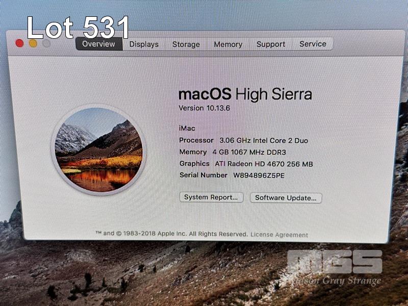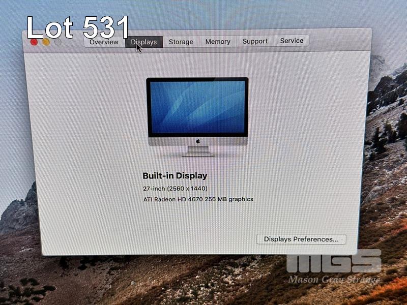 APPLE iMAC (A1312), CORE 2 DUO E7600 @ 3.06GHz, 4GB DDR3 RAM, 1TB SATA HDD, DVD-RW, BUILT-IN 27" DISPLAY (2560x1440), Wi-Fi, BLUETOOTH, MAC OS 10.13 INSTALLED (NO KEYBOARD, NO MOUSE) S/N:W894896Z5PE