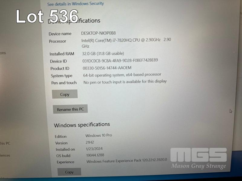 LAPTOP, LENOVO THINKPAD P51 MOBILE WORKSTATION, TYPE 20HJ, CORE i7 7820HQ (7TH GEN) @ 2.9GHz, 32GB DDR4 RAM, 512GB NVMe M.2 SSD, 15.6" WIDESCREEN (1920x1080), 4GB NVIDIA QUADRO M2200 VIDEO, Wi-Fi, BLUETOOTH, WINDOWS 10 PRO INSTALLED & POWER SUPPLY (NOTE: MINOR MARKS ON SCREEN) S/N:PF137QWP