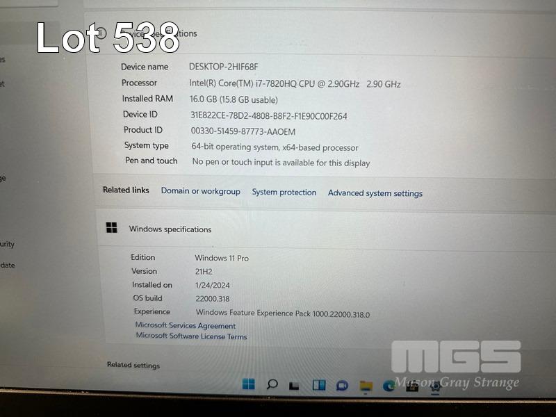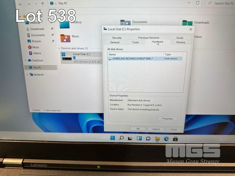 LAPTOP, LENOVO THINKPAD P51 MOBILE WORKSTATION, TYPE 20HJ, CORE i7 7820HQ (7TH GEN) @ 2.9GHz, 16GB DDR4 RAM, 512GB NVMe M.2 SSD, 15.6" WIDESCREEN (1920x1080), 4GB NVIDIA QUADRO M2200 VIDEO, Wi-Fi, BLUETOOTH, WINDOWS 11 PRO INSTALLED (NO POWER SUPPLY) (NOTE: MARKS ON SCREEN) S/N:PF155U14