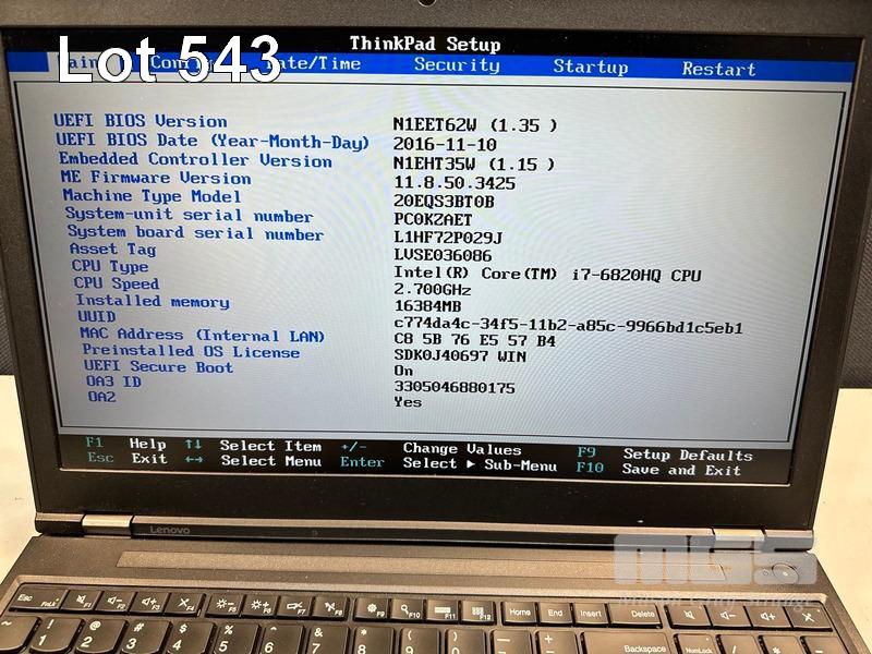 LAPTOP, LENOVO THINKPAD P50 MOBILE WORKSTATION, TYPE 20EQ, CORE i7 6820HQ (6TH GEN) @ 2.7GHz, 16GB DDR4 RAM, 256GB NVMe M.2 SSD, 15.6" WIDESCREEN (1920x1080), 4GB NVIDIA QUADRO M2000M VIDEO, Wi-Fi, BLUETOOTH, WINDOWS 10 PRO INSTALLED & POWER SUPPLY S/N:PC0KZAET