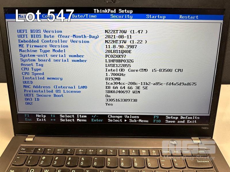 LAPTOP, LENOVO THINKPAD T480s, TYPE 20L8, CORE i5 8350U (8TH GEN) @ 1.7GHz, 8GB DDR4 RAM, 256GB NVMe M.2 SSD, 14" TOUCHSCREEN (1920x1080), INTEL HD VIDEO, Wi-Fi, BLUETOOTH, WINDOWS 11 PRO INSTALLED (NO USB-C POWER SUPPLY) (NOTE: MINOR MARKS ON SCREEN) S/N:PC0ZXK97
