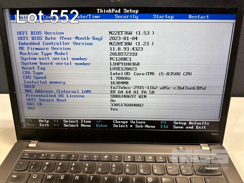 LAPTOP, LENOVO THINKPAD T480s, TYPE 20L8, CORE i5 8350U (8TH GEN) @ 1.7GHz, 16GB DDR4 RAM, 256GB NVMe M.2 SSD, 14" TOUCHSCREEN (1920x1080), INTEL HD VIDEO, Wi-Fi, BLUETOOTH, WINDOWS 11 PRO INSTALLED (NO USB-C POWER SUPPLY) (NOTE: DAMAGED SCREEN) S/N:PC120BC1