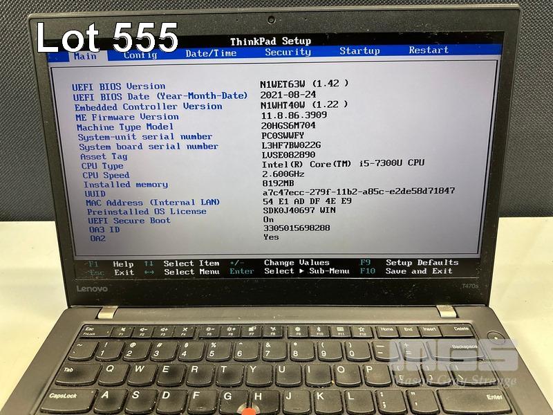 LAPTOP, LENOVO THINKPAD T470s, TYPE 20HG, CORE i5 7300U (7TH GEN) @ 2.6GHz, 8GB DDR4 RAM, 256GB NVMe M.2 SSD, 14" TOUCHSCREEN (1920x1080), INTEL HD VIDEO, Wi-Fi, BLUETOOTH, WINDOWS 10 PRO INSTALLED & POWER SUPPLY (NOTE: MINOR MARKS ON SCREEN) S/N:PC0SWWFY