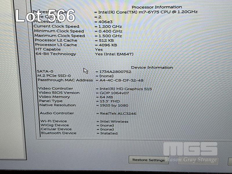 LAPTOP, DELL LATITUDE 7370, CORE m7-6Y75 (6TH GEN) @ 1.2GHz, 16GB DDR3 RAM, 512GB M.2 SSD, 13.3" WIDESCREEN (1920x1080), INTEL HD GRAPHICS 515, Wi-Fi, BLUETOOTH, WINDOWS 10 PRO INSTALLED (NO USB-C POWER SUPPLY) S/N:BMQ9MH2