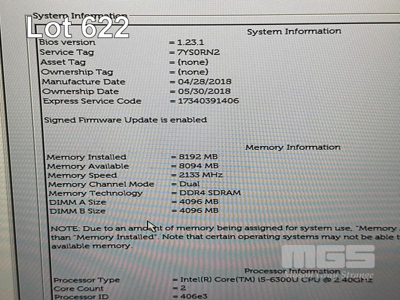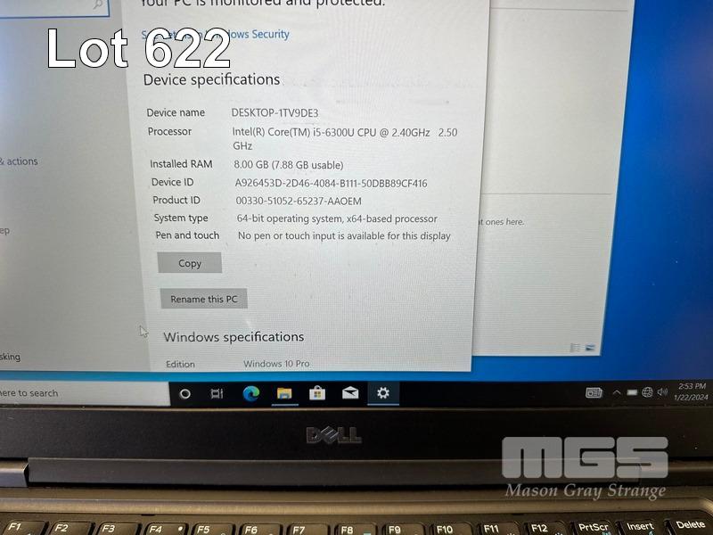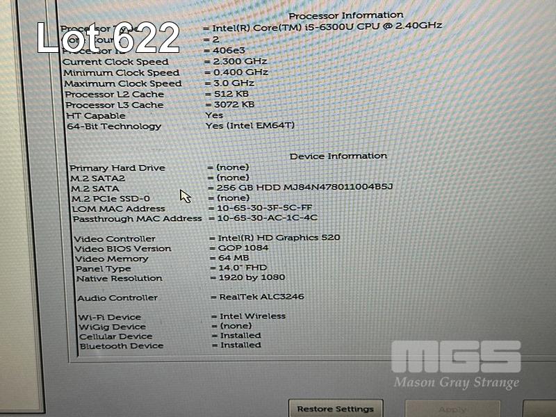 LAPTOP, DELL LATITUDE 5480, CORE i5 6300U (6TH GEN) @ 2.4GHz, 8GB DDR4 RAM, 256GB M.2 SSD, 14" WIDESCREEN (1920x1080), INTEL HD GRAPHICS 520, Wi-Fi, CELLULAR, BLUETOOTH, WINDOWS 10 PRO INSTALLED (NO POWER SUPPLY) (NOTE: MARKS & BRIGHT SPOT ON SCREEN) S/N:7YS0RN2