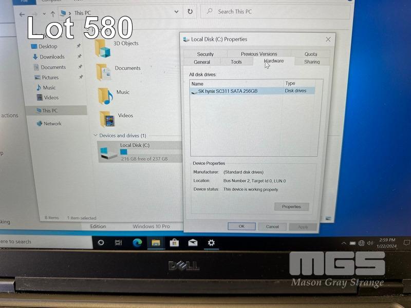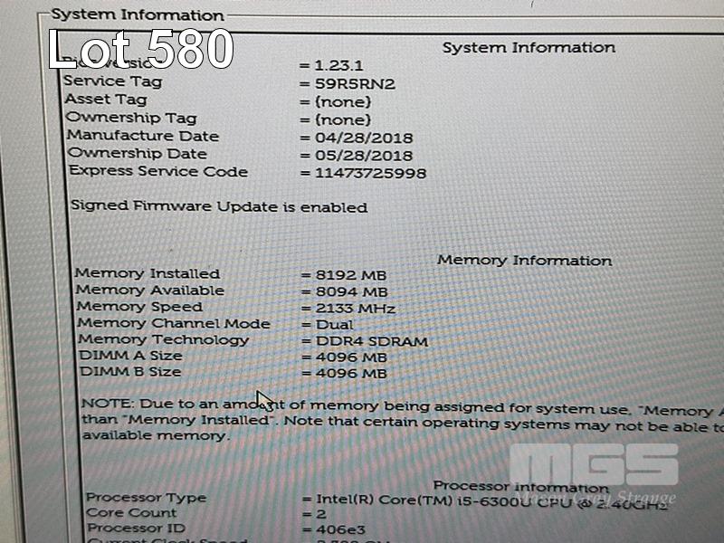 LAPTOP, DELL LATITUDE 5480, CORE i5 6300U (6TH GEN) @ 2.4GHz, 8GB DDR4 RAM, 256GB M.2 SSD, 14" WIDESCREEN (1920x1080), INTEL HD GRAPHICS 520, Wi-Fi, CELLULAR, BLUETOOTH, WINDOWS 10 PRO INSTALLED (NO POWER SUPPLY) (NOTE: MARKS ON SCREEN) S/N:59R5RN2