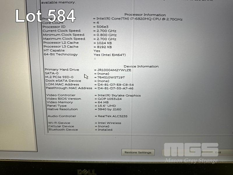 LAPTOP, DELL PRECISION 7510 WORKSTATION, CORE i7 6820HQ (6TH GEN) @ 2.7GHz, 32GB DDR4 RAM, 512GB NVMe M.2 SSD, 1TB SATA HDD, 15.6" WIDESCREEN (1920x1080), 4GB NVIDIA QUADRO M2000M VIDEO, Wi-Fi, BLUETOOTH, WINDOWS 10 PRO INSTALLED (NO POWER SUPPLY) (NOTE: LINE ON SCREEN) S/N:B8Y0MC2