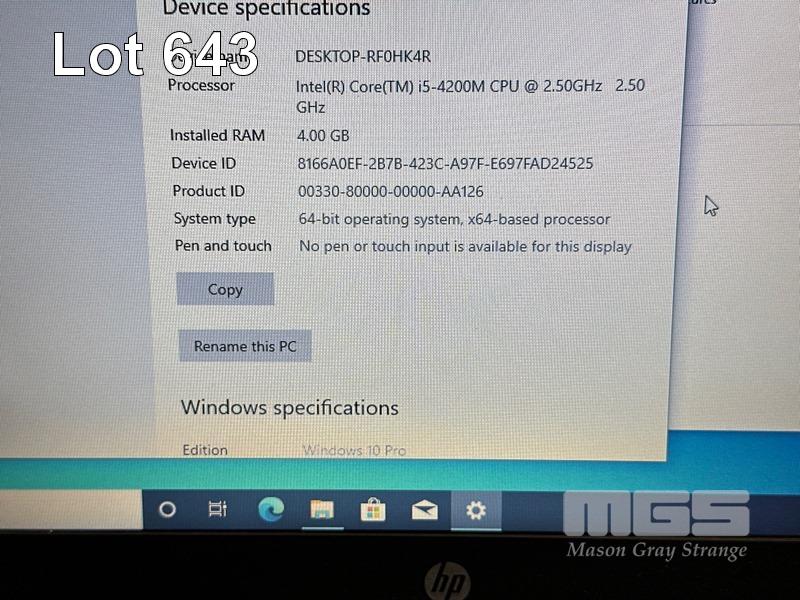 LAPTOP, HP PROBOOK 640 G1, CORE i5 4200M (4TH GEN) @ 2.5GHz, 4GB DDR3 RAM, 120GB SSD, DVD-RW, 14" WIDESCREEN (1366x768), INTEL HD VIDEO, Wi-Fi, BLUETOOTH, WINDOWS 10 PRO INSTALLED & POWER SUPPLY (NOTE: SCREEN BLEMISHES) S/N:5CG5070JFX