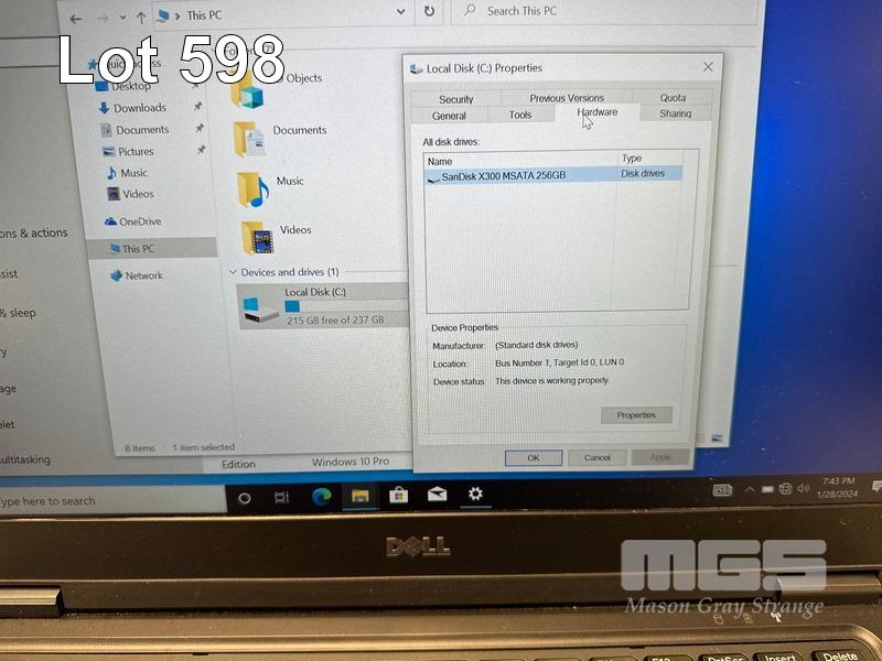 LAPTOP, DELL LATITUDE E7450, CORE i5 5300U (5TH GEN) @ 2.3GHz, 8GB DDR3 RAM, 256GB SSD, 14" WIDESCREEN (1920x1080), INTEL HD VIDEO, Wi-Fi, CELLULAR, BLUETOOTH, WINDOWS 10 PRO INSTALLED (NO POWER SUPPLY) (NOTE: MARKS ON TOUCHPAD) S/N:6TPX362