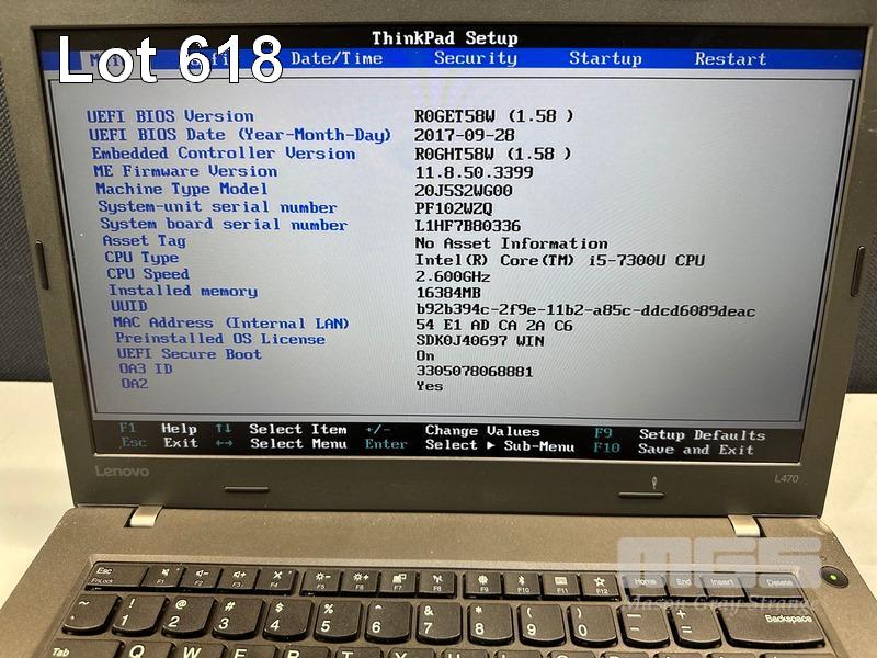 LAPTOP, LENOVO THINKPAD L470, TYPE 20J5, CORE i5 7300U (7TH GEN) @ 2.6GHz, 16GB DDR4 RAM, 256GB SSD, 14" WIDESCREEN (1920x1080), INTEL HD VIDEO, Wi-Fi, BLUETOOTH, WINDOWS 10 PRO INSTALLED & POWER SUPPLY (NOTE: MINOR DAMAGE TO CASING) S/N:PF102WZQ