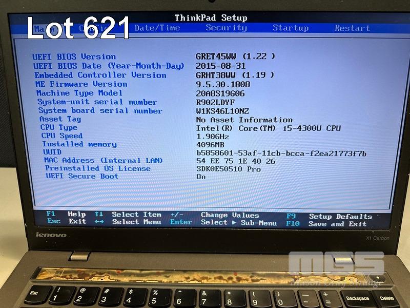 LAPTOP, LENOVO THINKPAD X1 CARBON, TYPE 20A8, CORE i5 4300U (4TH GEN) @ 1.9GHz, 4GB DDR3 RAM, 256GB SSD, 14" WIDESCREEN (1600x900), INTEL HD VIDEO, Wi-Fi, BLUETOOTH, WINDOWS 10 PRO INSTALLED & POWER SUPPLY (NOTE: POOR CONDITION, MINOR MARKS ON SCREEN) S/N:R902LDYF