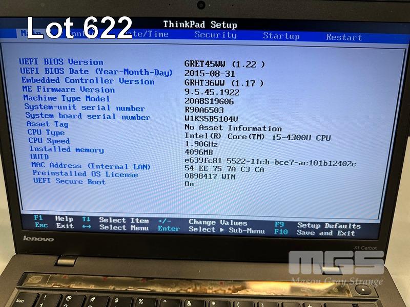 LAPTOP, LENOVO THINKPAD X1 CARBON, TYPE 20A8, CORE i5 4300U (4TH GEN) @ 1.9GHz, 4GB DDR3 RAM, 256GB SSD, 14" WIDESCREEN (1600x900), INTEL HD VIDEO, Wi-Fi, BLUETOOTH, WINDOWS 10 PRO INSTALLED & POWER SUPPLY (NOTE: POOR CONDITION, MINOR MARKS ON SCREEN) S/N:R90A6503
