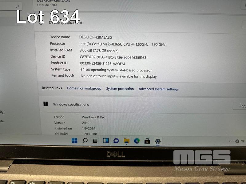 3 x LAPTOPS INC - DELL LATITUDE 5300, CORE i5 8365U (8TH GEN) @ 1.6GHz, 8GB DDR4 RAM, 256GB NVMe M.2 SSD, 13.3" WIDESCREEN (1920x1080), INTEL UHD GRAPHICS 620, Wi-Fi, CELLULAR, BLUETOOTH, WINDOWS 11 PRO INSTALLED (NO POWER SUPPLY) (NOTE: NO BATTERY, MARKS ON SCREEN, 1 x WITH MINOR DAMAGE TO CASING) S/N:JSCYLTS, 9JY2KW2, 9F6WGW2