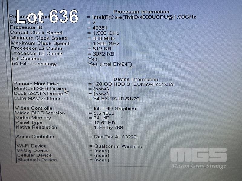 2 x LAPTOPS INC - DELL LATITUDE E7240, CORE i3 4030U (4TH GEN) @ 1.9GHz, 8GB DDR3 RAM, 128GB SSD, 12.5" WIDESCREEN (1366x768), WINDOWS 10 PRO INSTALLED (NO POWER SUPPLY) S/N:C0G5Q12, 3DG5Q12