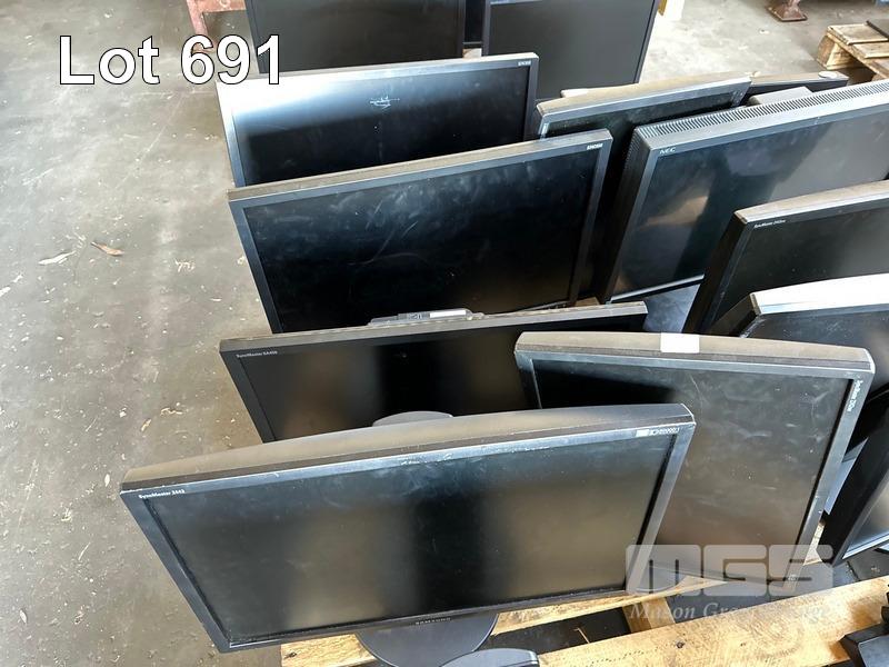 11 x SAMSUNG LCD MONITORS (3 x NO STANDS), 1 x NEC LCD MONITOR, 1 x DELL LCD MONITOR (NO CABLES)