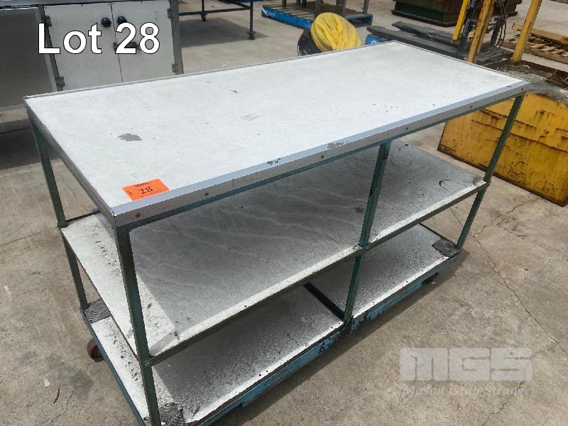 MOBILE STOCK TROLLEY, 3 TIER, PARTICLEBOARD SHELVES, 1400 x 600 x 940mm