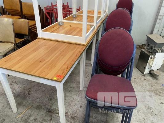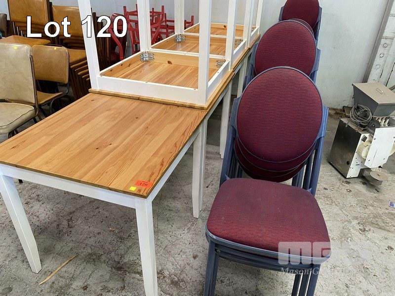7 x CAFE TABLES, 74x 74cm, STAINED TIMBER TOP