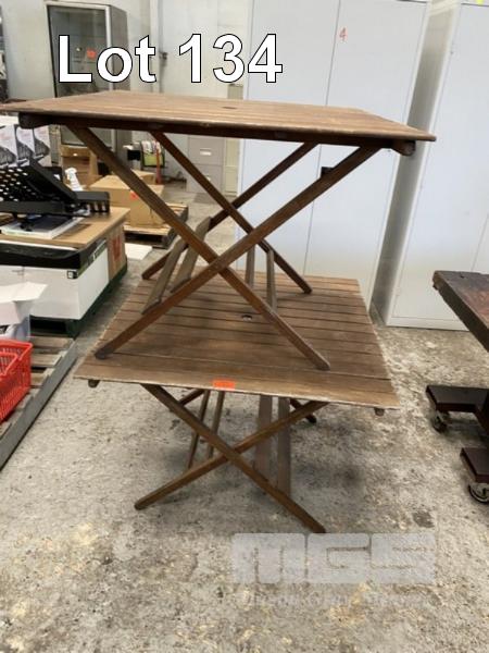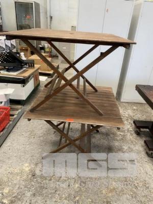 2 x TIMBER SLAT FOLDING TABLES, 94 x 90cm