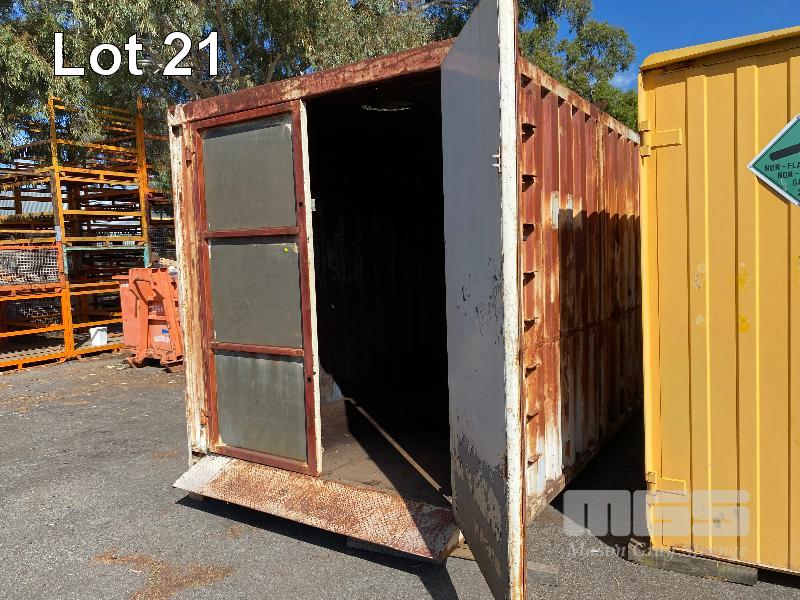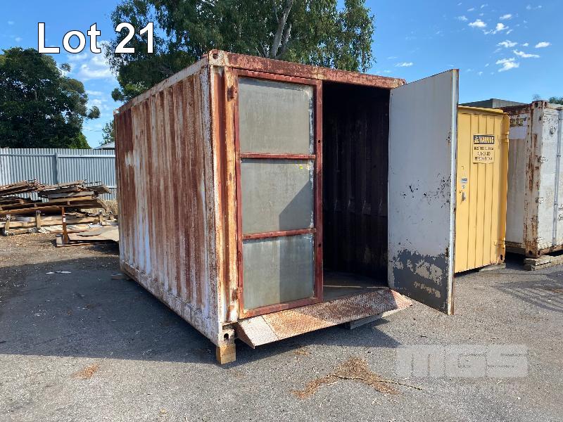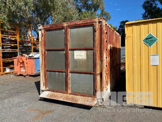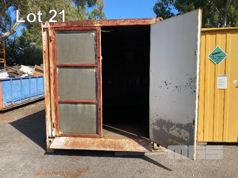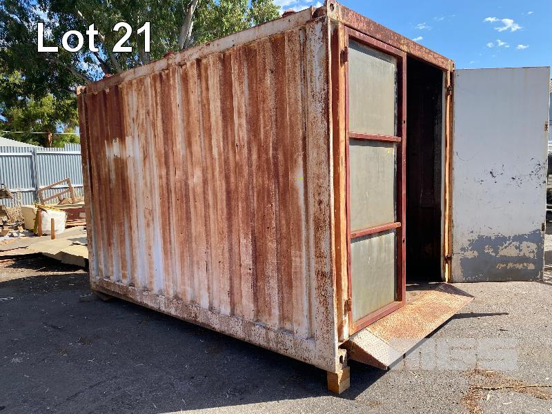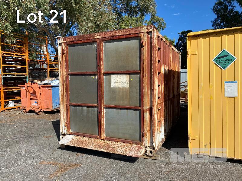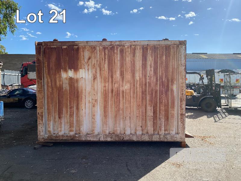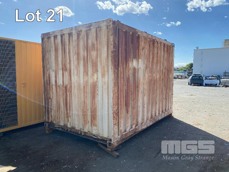 SHIPPING CONTAINER, FITTED WITH 2 x FRONT DOORS, 4 x TOP LIFTING LUGS, 4 x BOTTOM LOCKING LUGS, FRONT RAMP, STEEL FLOOR, 3800 x 2430 x 2600mm (H) RUSTY, SOME LEAKS