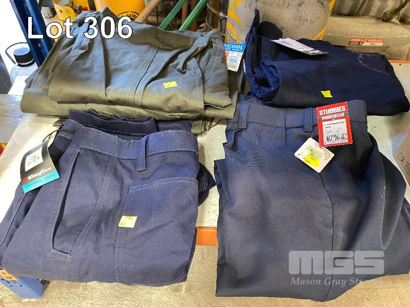 6 x PAIRS WORK PANTS INC STUBBIES, KING GEE, ETC