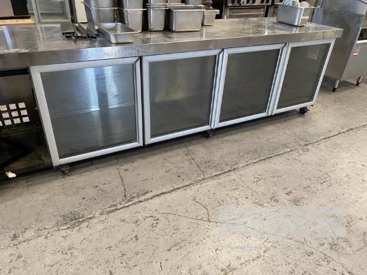 COUNTER DISPLAY, 4 DOOR , 282cm STAINLESS STEEL CASED NOTE: NO UNIT & NO SHELVES. DISPLAY ONLY, HOT REFRIGERATED