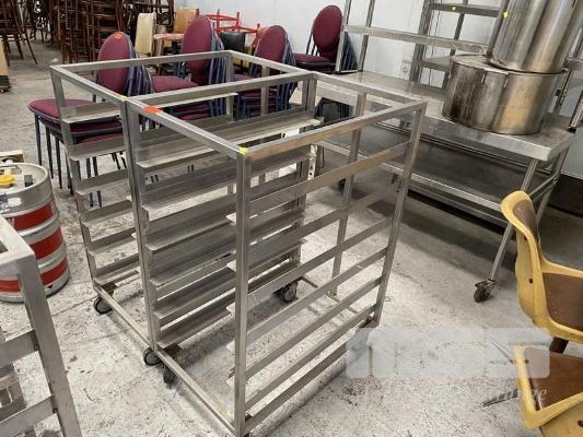 2 X STAINLESS STEEL MOBILE TRAY TROLLEYS, 58 X 83CM, 6 TIER