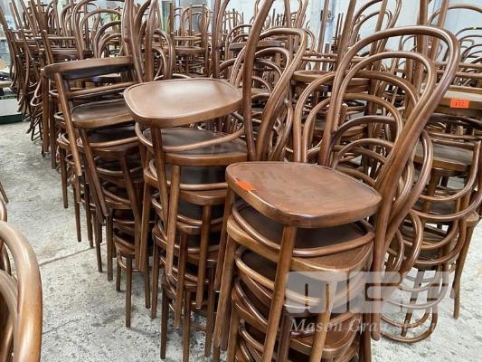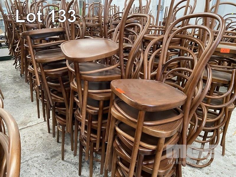 27 x BENTWOOD STYLE CAFE CHAIRS, STAINED TIMBER