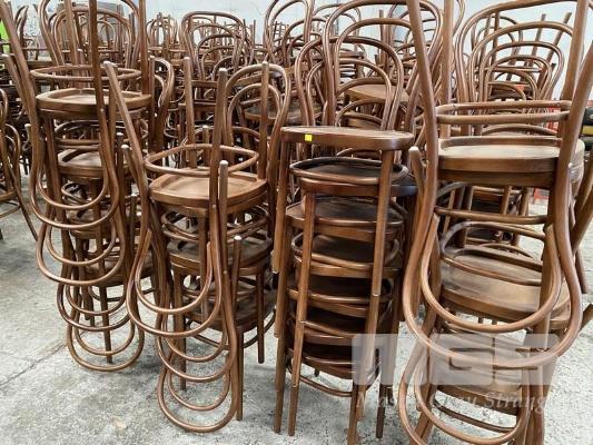27 x BENTWOOD STYLE CAFE CHAIRS, STAINED TIMBER