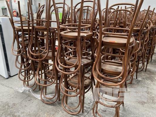 26 x BENTWOOD STYLE CAFE CHAIRS, STAINED TIMBER