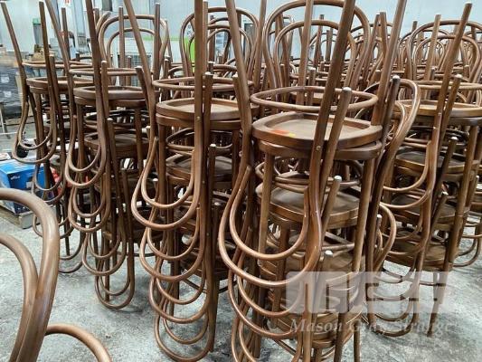 32 x BENTWOOD STYLE CAFE CHAIRS, STAINED TIMBER