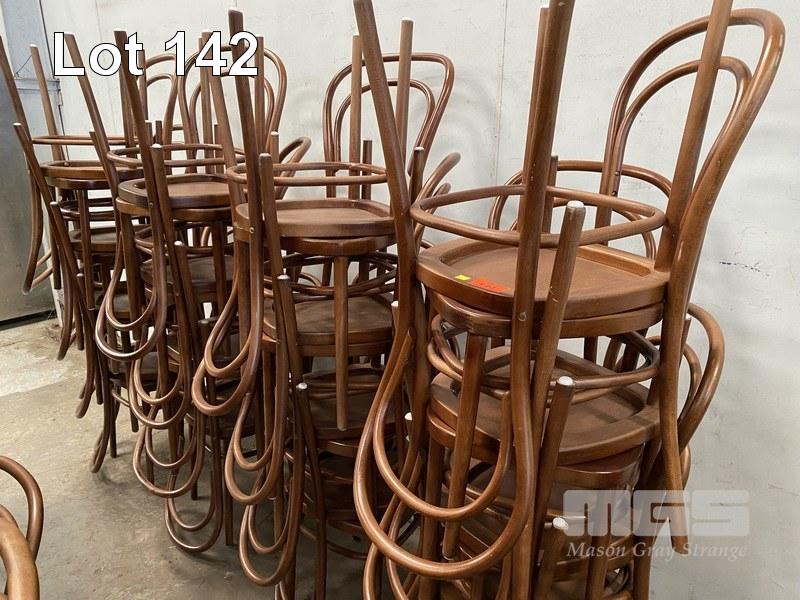 31 x BENTWOOD STYLE CAFE CHAIRS, STAINED TIMBER
